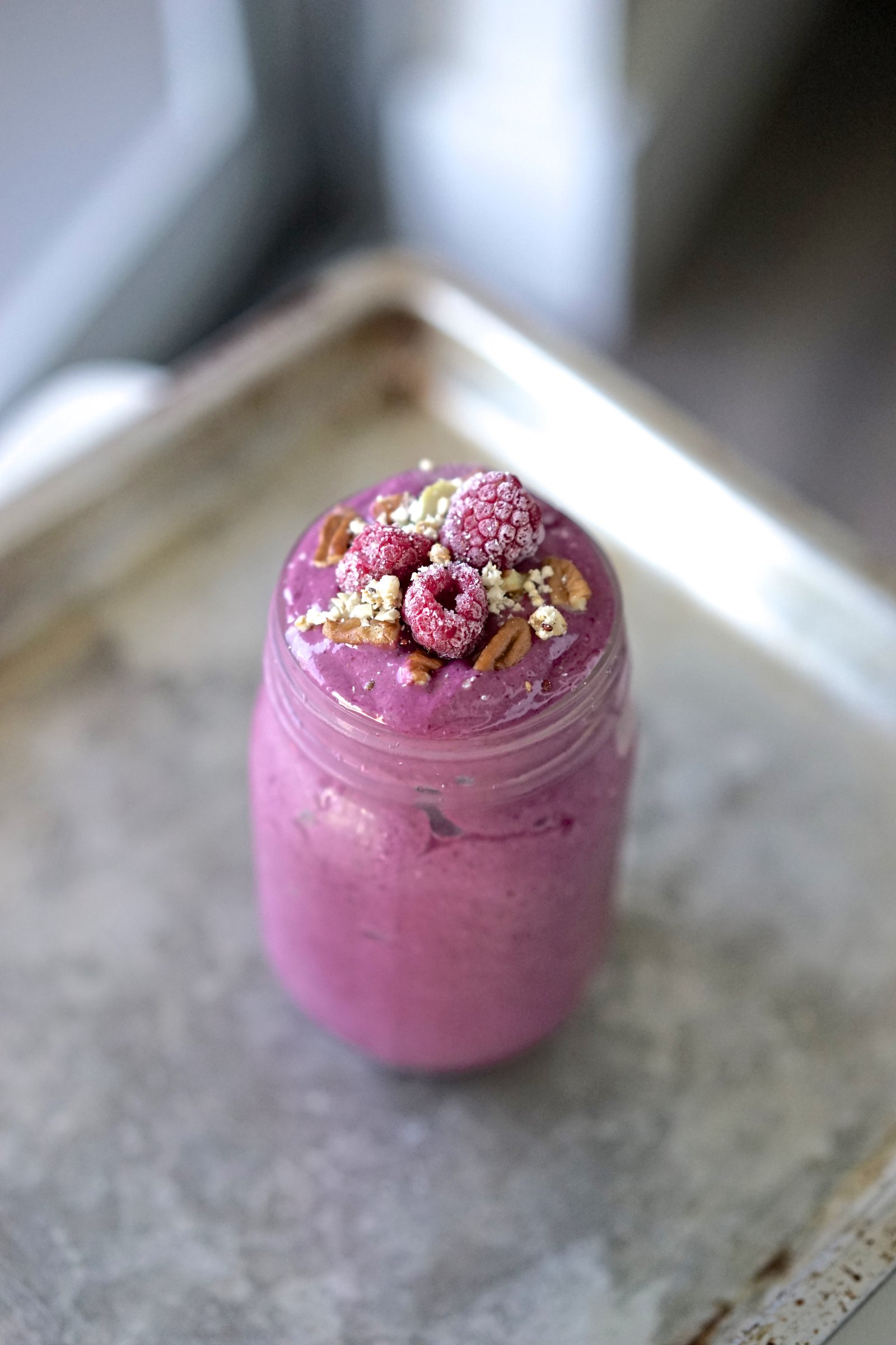 This bad boy is packed with frozen mixed berries, tender rolled oats–soaked in oat milk for double oat trouble, plus creamy salted almond butter, ground cinnamon, and pure vanilla extract.