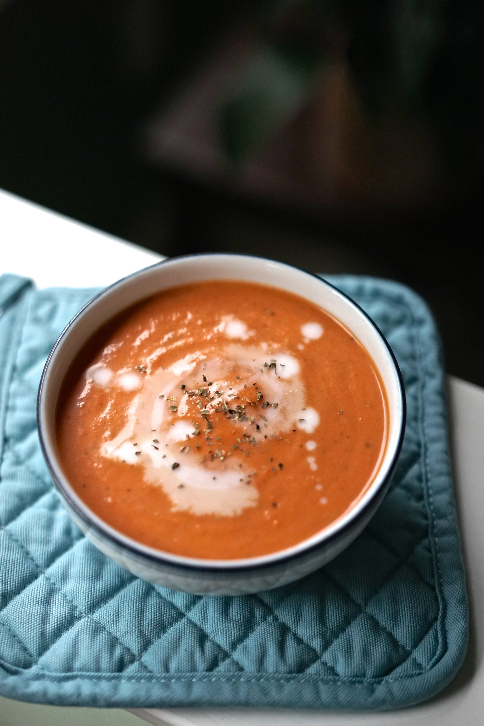 I have been known to crack open a can of tomato soup from time to time buttt it’s hard to find a flavorful vegan option and in this case homemade is a lot better!