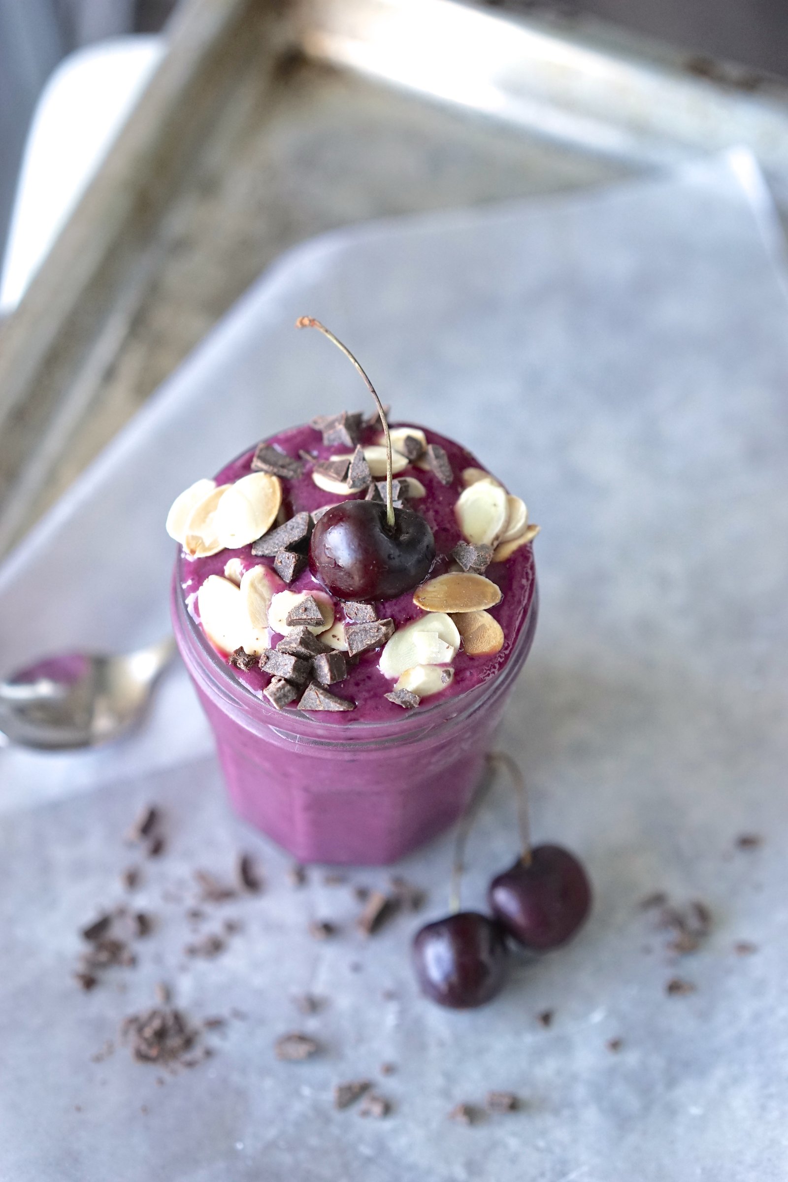 Top your summer sipper off with chopped dark chocolate, nutty toasted almonds, and more fresh cherries.